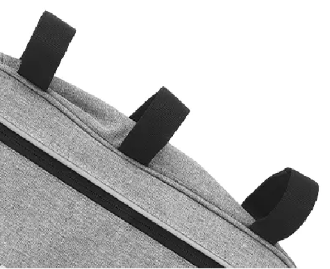 Sa mhála triantáin feadáin barr rothar sléibhe bóthair liath BI-03 tá pócaí iolracha le urranna atá deartha go straitéiseach chun earraí cosúil le fóin, sparán, eochracha agus buidéil uisce a stóráil go áisiúil. Tomhaiseann sé 34 x 6.5 x 26 cm agus coimeádann sé 5.75L. Tagann sé le stiallacha machnamhach le haghaidh sábháilteachta feabhsaithe le linn marcaíocht oíche agus is féidir é a shaincheapadh le lógó. Déanann an zipper taobh uiscedhíonach sé éasca a iompar.